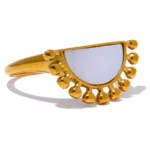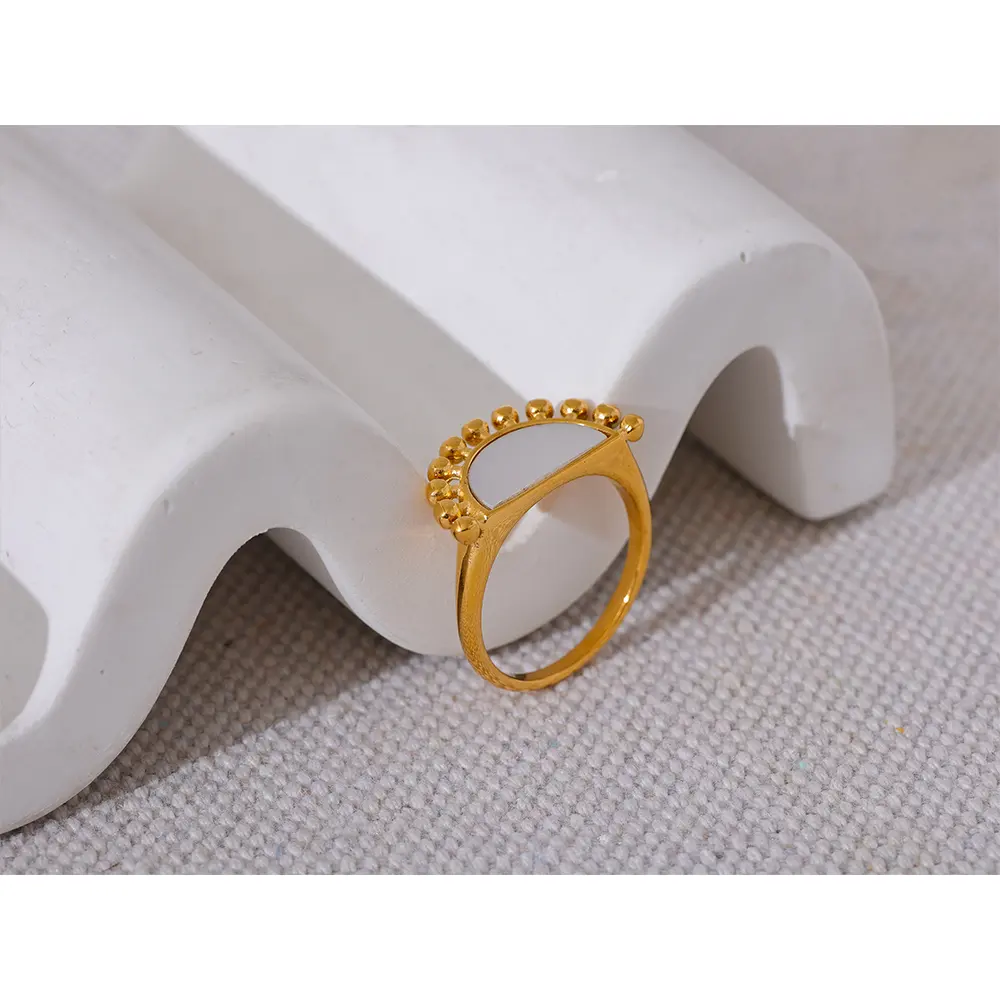 JINYOU 2679 Trendy Aço Inoxidável Natural Shell Fan Ring para As Mulheres Personalizado Ouro Versátil Dedo Jóias de Alta Qualidade