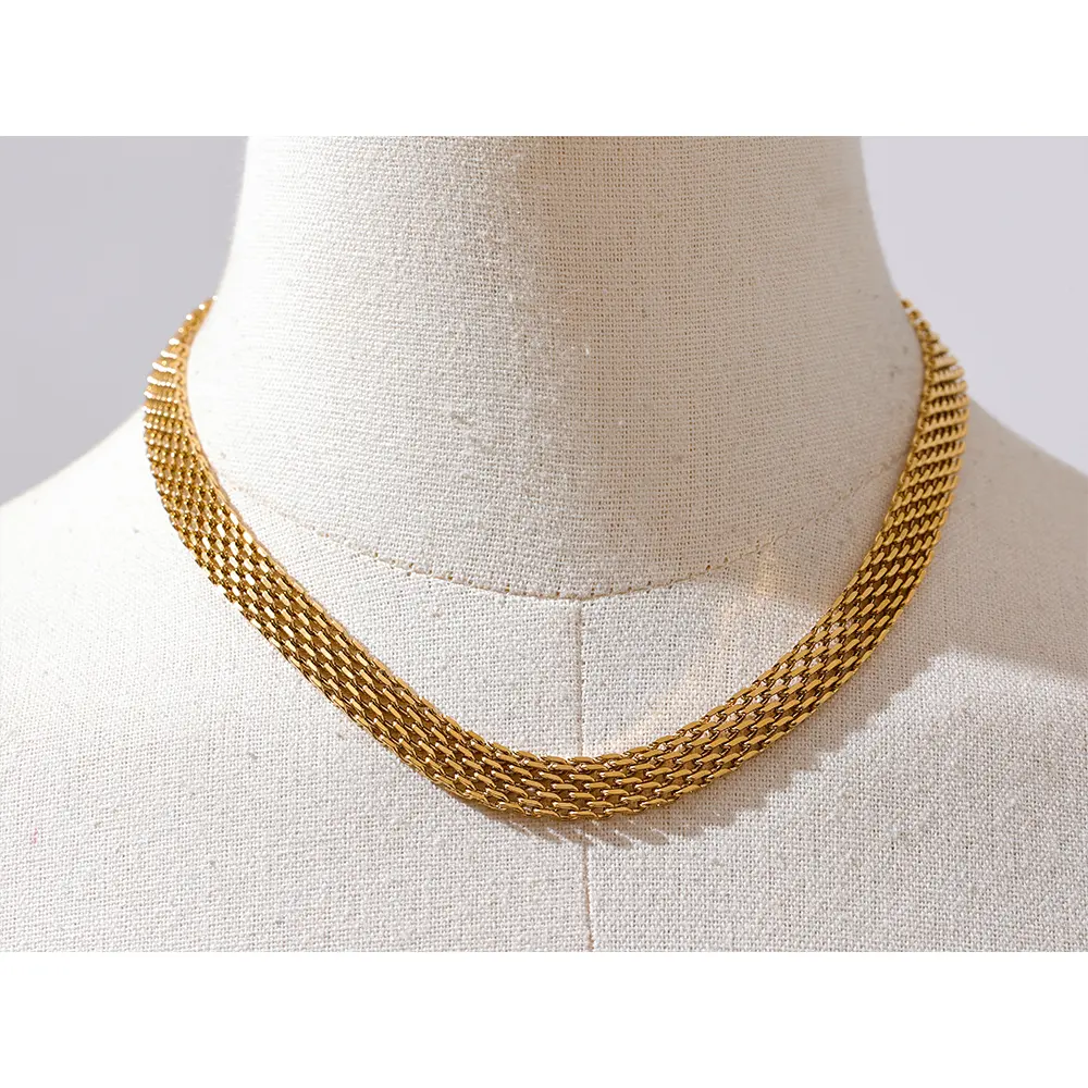 JINYOU 2703 Impermeável Aço Inoxidável Metal Corrente Cubana Wide Neck Necklace Ouro Prata Cor Trendy Textura Declaração Jóias